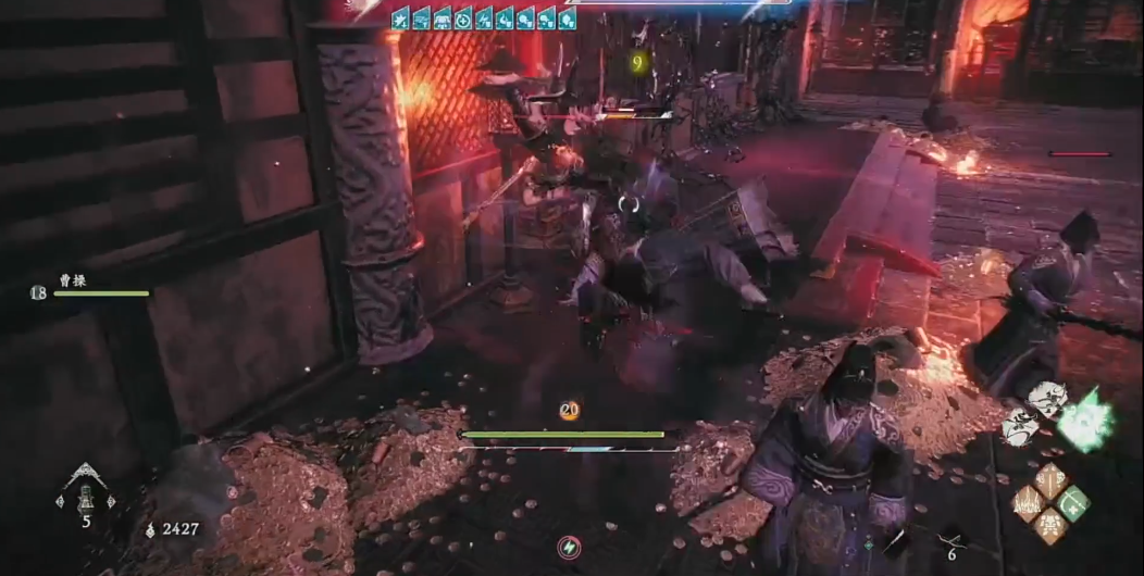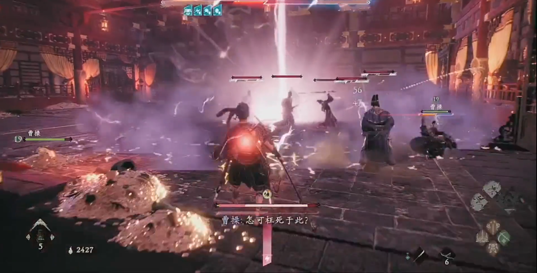 张让这一关最大的难点就是分身数量多,本体和分身加起来最多能有十个敌人同时在场。因此自己进入战场前最好先做好两件事,第一是带上固定帮手曹操,再用虎符额外召唤一名强力队友比如关羽,这样就能形成三打多的局面分担压力。第二是装备双剑类武器,这类武器平a速度快且自带范围攻击的武技,它们可以让自己清理起分身的速度更快,尤其是像转圈侧身这类技能既能打伤害又能闪避,非常适合拿来处理这种群体战。