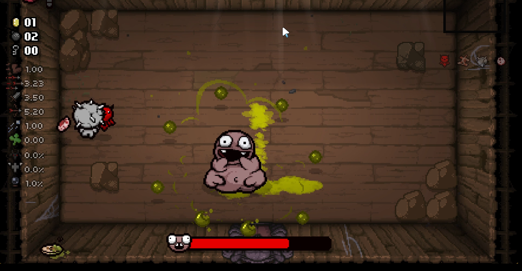 嘘嘘怪的血量有450点,虽然它不会主动追着人物跑,但光是站着不动就能靠接触伤害恶心人,然后还会分阶段搞出各种花样。第一阶...