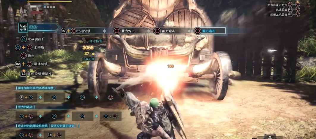 铳枪的右键炮击可以接在任何攻击的后面,那么实战的时候就可以做到一插一炮的循环,如果是一挑一炮的话连开两炮之后可以接第三炮...