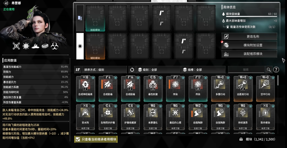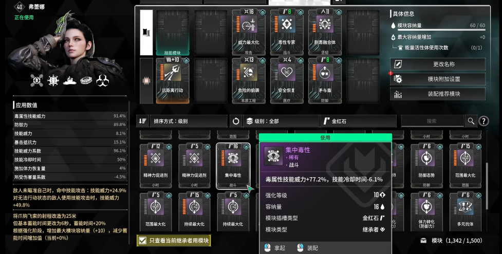 弗雷娜的模块选择毒性专家就行,不选集中毒性或是毒性大师的原因首先就自己的构筑而言,不需要为了技能冷却而牺牲技能威力加成,...