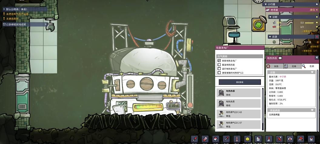 地热热泵在缺氧寒霜行星包,DLC正式版中加入,在本体DLC任意模式中的谷神星开局,地热热泵和三个地热排气口都会在星球中自...