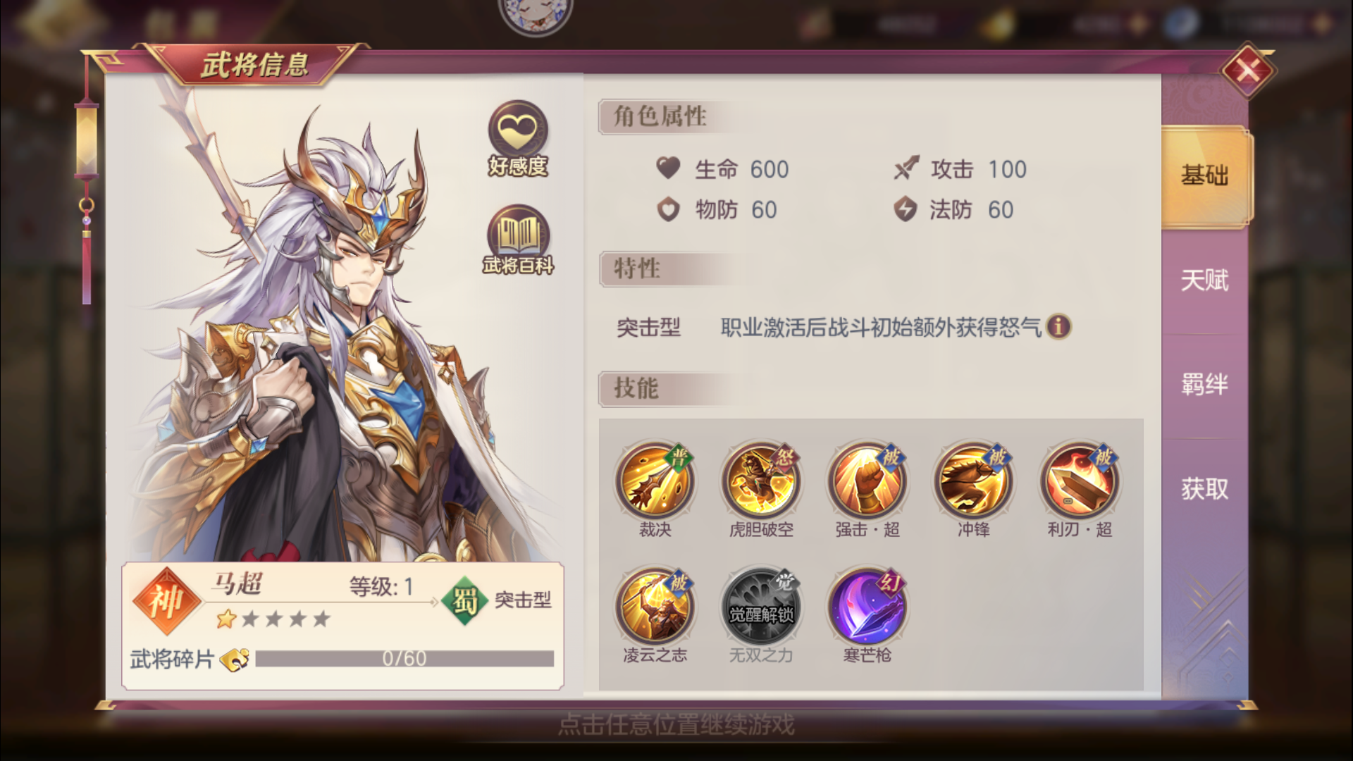 马超是一名单体输出能力很强的突击性武将,他可以针对单个前排的防御型敌人进行攻击,尽快摧毁敌方前排的防御。他的所有攻击都是...
