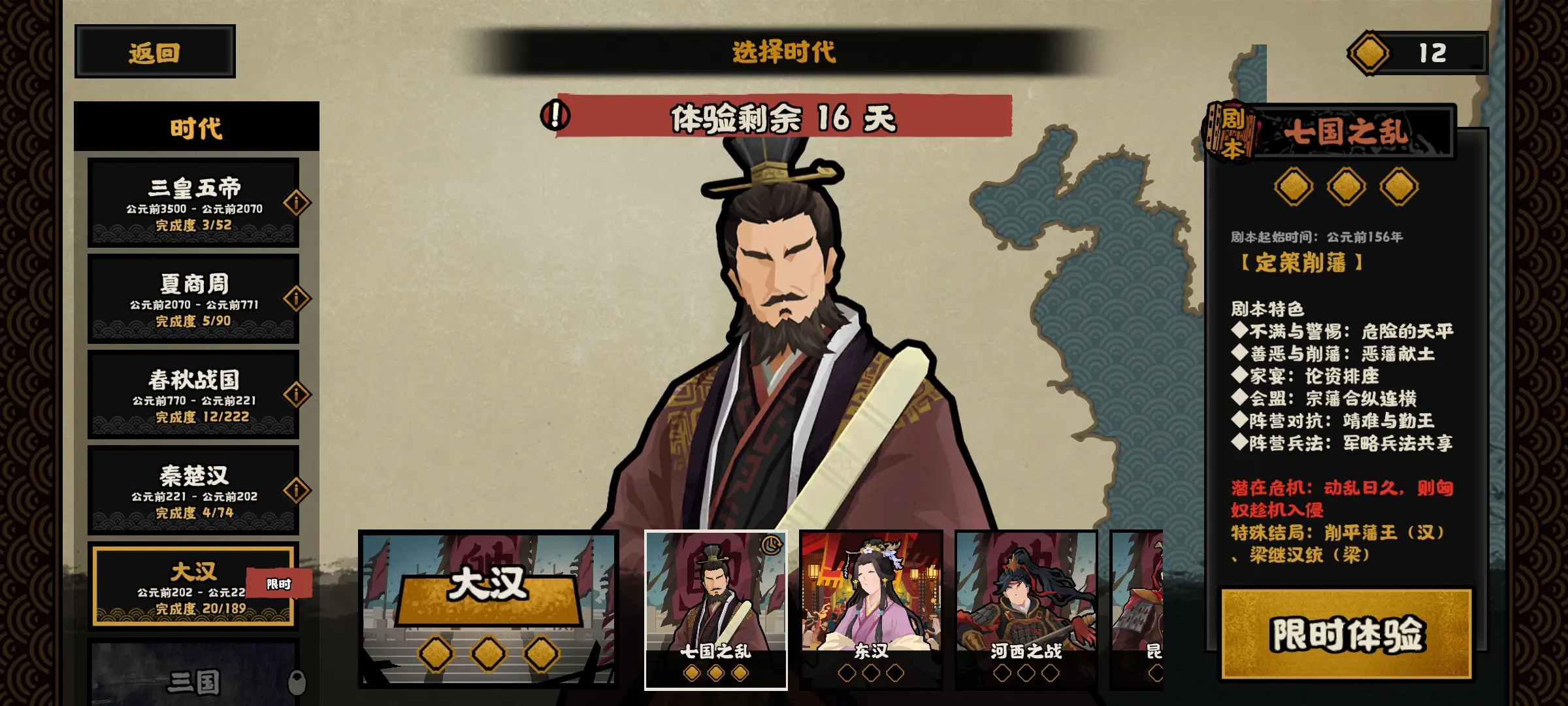 在七国之乱剧本中,玩家在开始剧本前无法选择阵营,需要等到有藩王发起叛乱后才可以选择汉阵营或者藩王阵营。开局默认玩家操控的...
