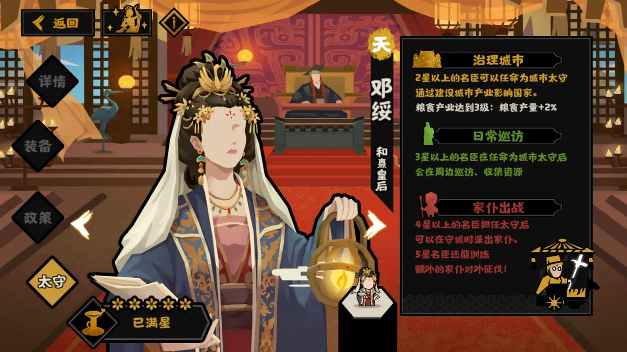 邓绥的三个政策里面只有绥和政策需要花四个铁或者青铜才能施行,但是它也是唯一可以提供兵法的政策。半钱半谷这个政策的主要作用...