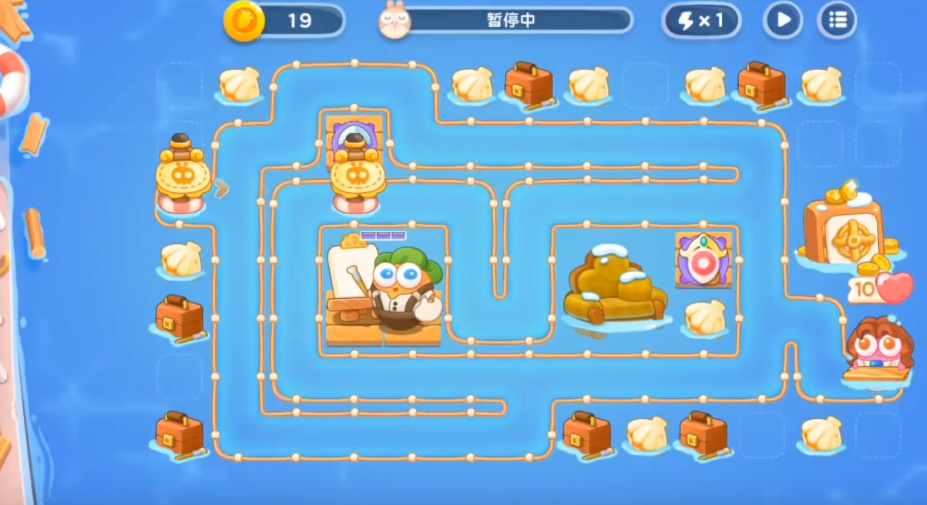 这一关虽然只有两个出怪口但是有四条路线,因此玩家需要尽快在路段的外圈建造炮塔。开启给出的浮板只有两个,而且其中一个浮板上...